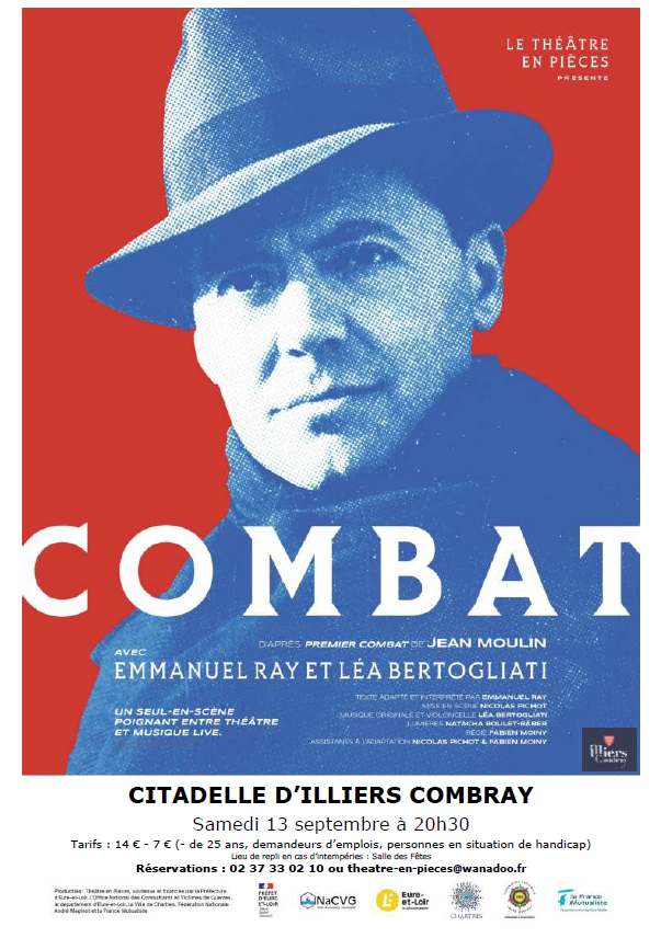 Adapté de Premier Combat de Jean Moulin, Combat est un seul en scène magistralement interprété par Emmanuel Ray, accompagné au violoncelle par Léa Bertogliati. Ce spectacle saisissant explore les dilemmes moraux d’un homme confronté à l’oppression, à la peur, mais aussi à l'exigence du devoir et du courage.