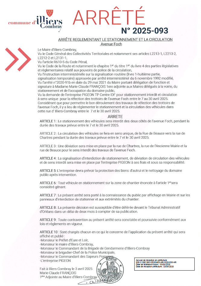 Arrêté 2025-093 – Avenue Foch